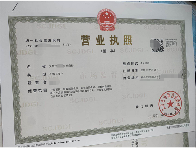 不管是以上哪種情況,都需要通過注冊好的義烏個體戶執照去開銀行賬戶。注冊義烏個體戶執照:提供身亻分證照片即可,不需要本人到場。這個過程需要3-5個工作日,執照下來就可以去銀行開戶了。