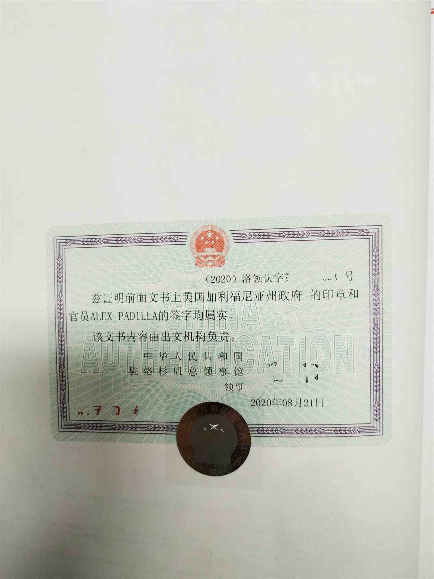 3.將州務卿認證好的文件遞交到中國駐美國使館認證。