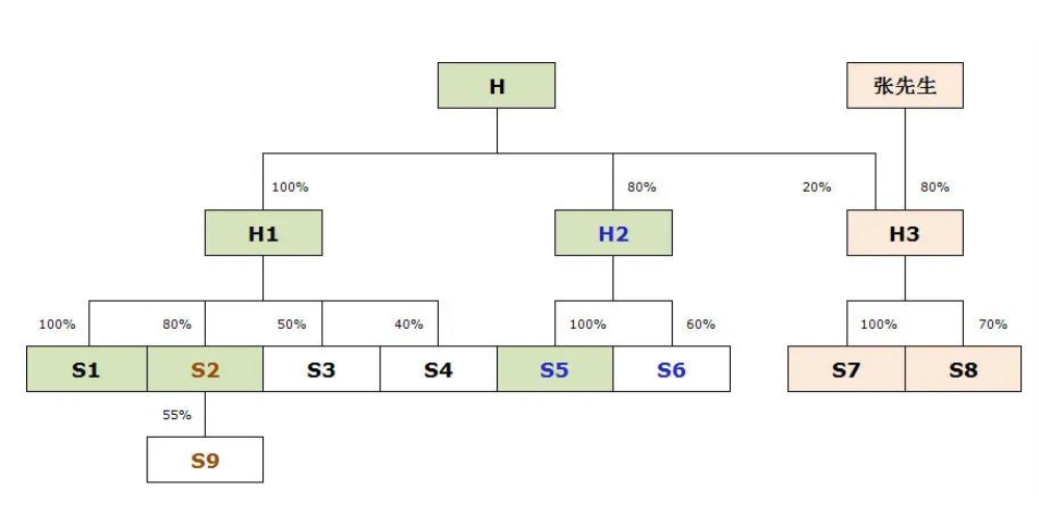 (2)法團H擁有或控制法團S5合計80%的已發行股本╱有權行使或支配行使法團S5合計80%的表決權(即80% × 100%)。