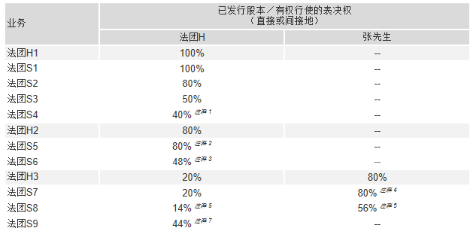 (7)法團H擁有或控制法團S9合計44%的已發行股本╱有權行使或支配行使法團S9合計44%的表決權(即100% × 80% × 55%)。