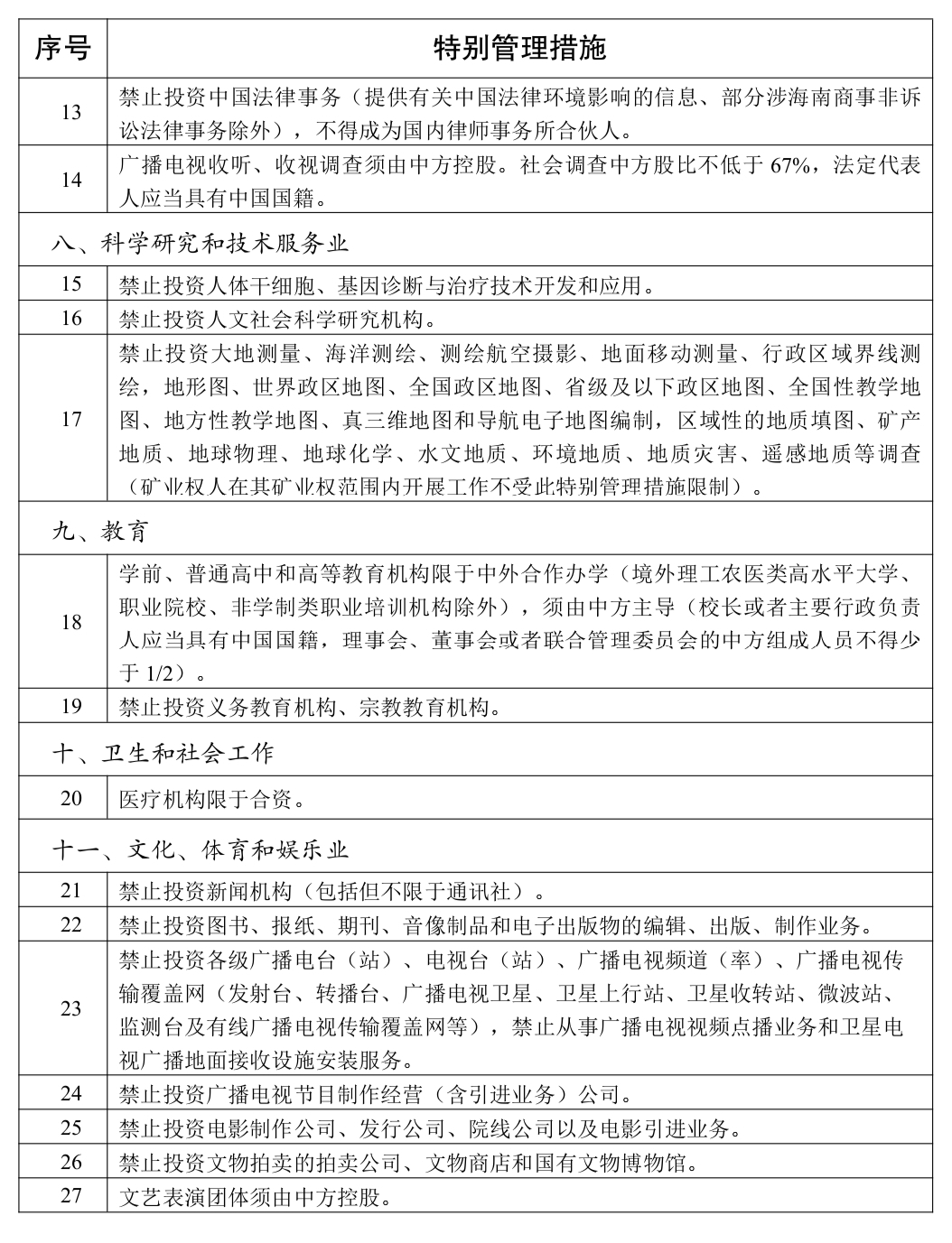 二、擴大商務服務對外開放。法律服務領域,允許外商投資部分涉海南商事非訴訟法律事務,更好滿足海南自由貿易港貿易、投資、金融等領域涉外法律服務需求。咨詢和調查領域,除廣播電視收聽、收視調查須由中方控股外,取消市場調查領域外資準入限制;允許外商投資社會調查,且中方股比不低于67%,法人代表應當具有中國國籍。