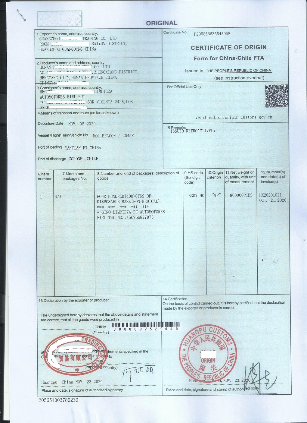 ——代辦出口智利FORM F,代辦中國-智利自由貿(mào)易區(qū)優(yōu)惠FTA原產(chǎn)地證