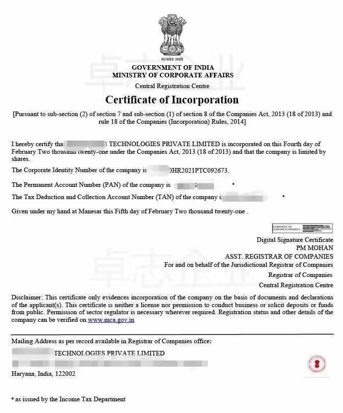 核名過了就是提交注冊,注冊一般2周內可以拿到COI ,拿到COI 以后就是安排銀行開戶,基本印度的銀行如ICICI,Kotak都可以給客戶開戶,目前的費用只針對一家銀行的開戶,若客戶要求開多家銀行是可以的,另外收銀行費用。銀行開戶一般3-5天就可以開好,包括給客戶打注冊資本金(目前注冊資本10萬盧比,我們會替客戶做股本存入10000盧比約1000RMB),銀行開戶完了以后會做INC-20A的申報,就是在政府網上做開業申報(申報會要求一些材料,會要求銀行那邊的步驟弄完才能做)。然后就是GST 申報,GST申報要在開業申報完成以后做,成功率最大,我們之前試過銀行開戶跟GST 同時做,會要求補材料。GST大概1-2周完成以后的材料:印度注冊完成的材料都是電子檔自己下載。印度公司注冊,資料收齊后大約 20 個工作日獲取到注冊證書。