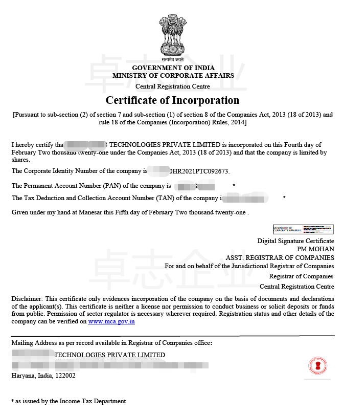 - 我司起草的印度公司資料。