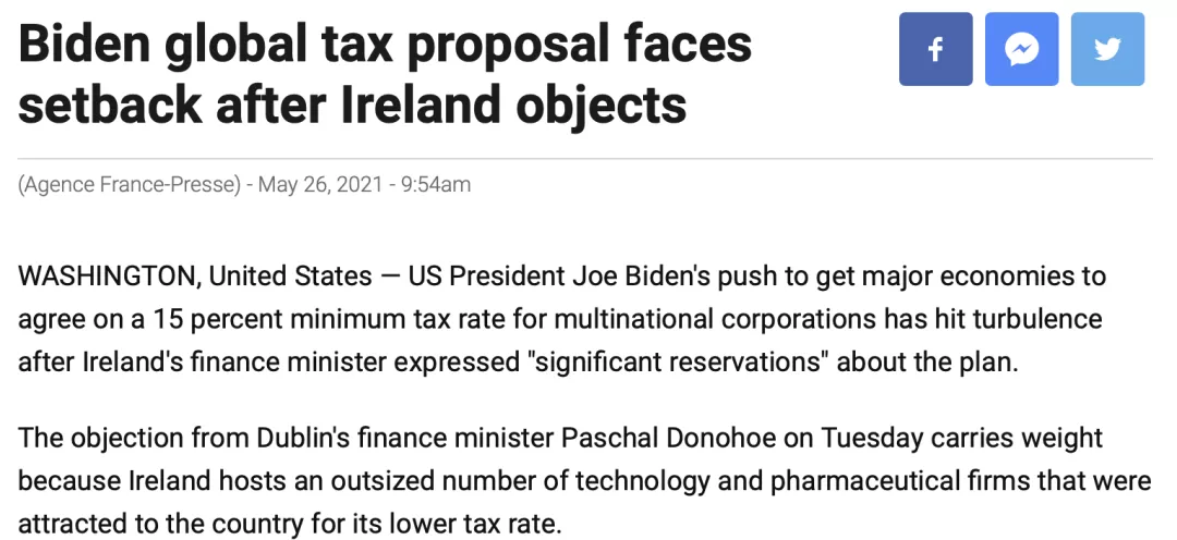 只是時移世易,曾經的12.5%即將被15%所取代,那么,愛爾蘭在接下來的15%最低全球稅率體系中就只能“悲劇”了。正因為如此,在一眾避稅天堂中,愛爾蘭不顧一切地站了出來,直接對新的最低稅率表示反對。