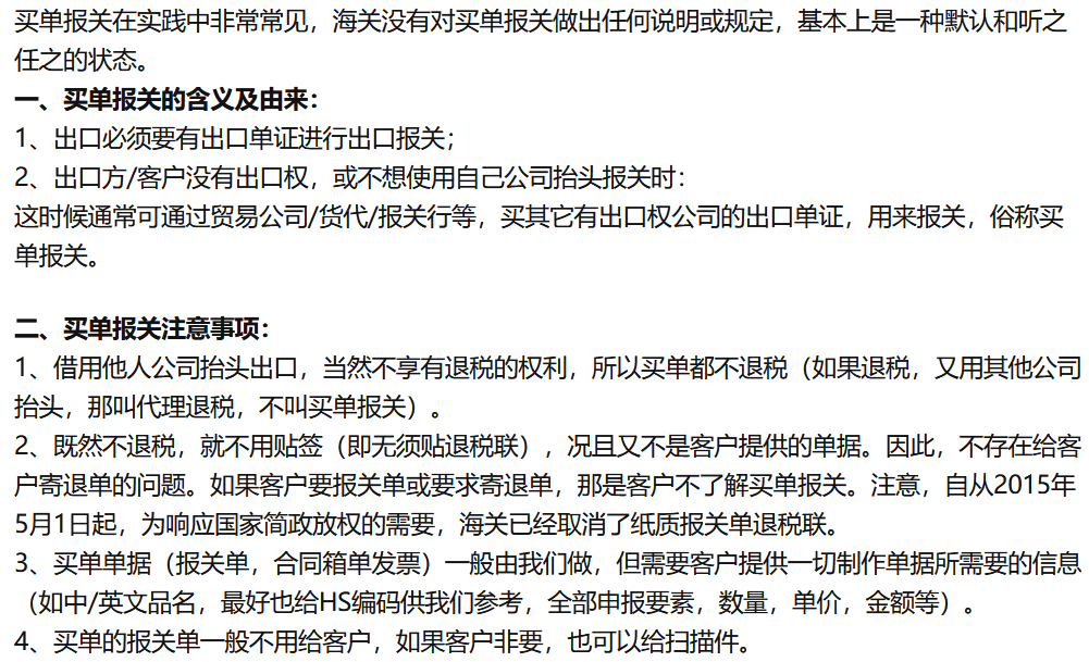 買單報關的理解