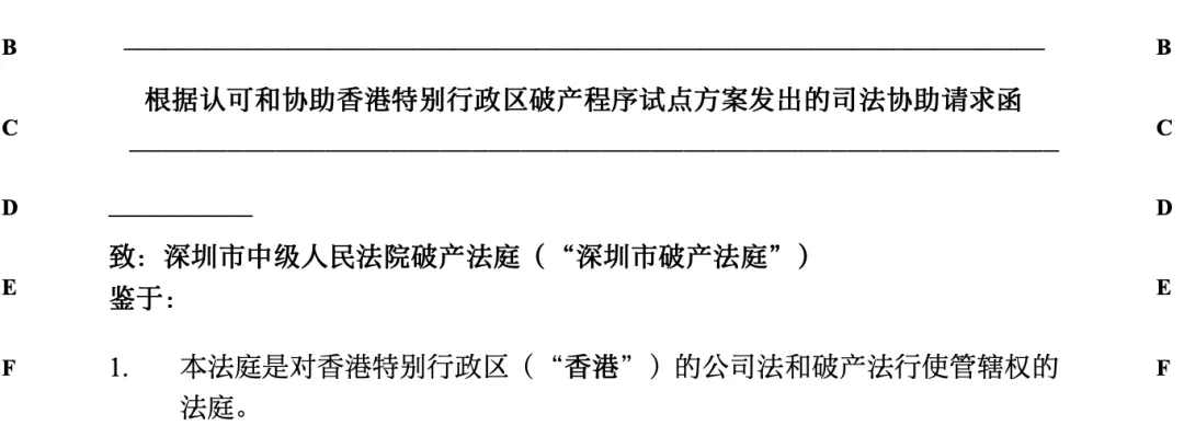 根據(jù)申請函,香港高等法院尋求深圳中院為清盤程序及清盤人提供協(xié)助,簽發(fā)命令并指示: