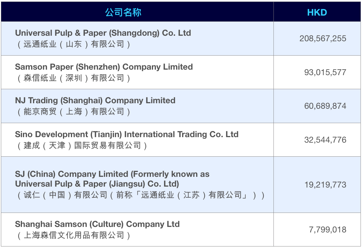 - 一家位于深圳的全資附屬公司,即森信紙業(yè)(深圳)有限公司,該公司又在南寧和廈門持有兩家分公司;