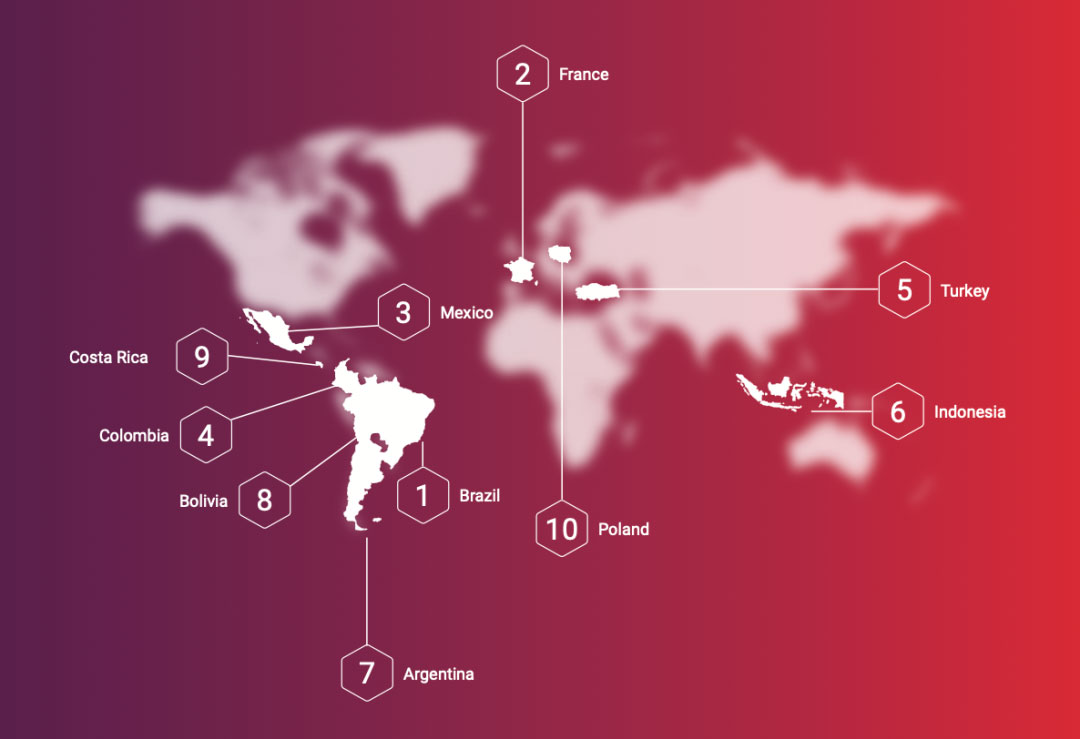 — 全球十大商業復雜性最高的司法管轄區為:巴西、法國、墨西哥、哥倫比亞、土耳其、印度尼西亞、阿根廷、玻利維亞、哥斯達黎加、波蘭。