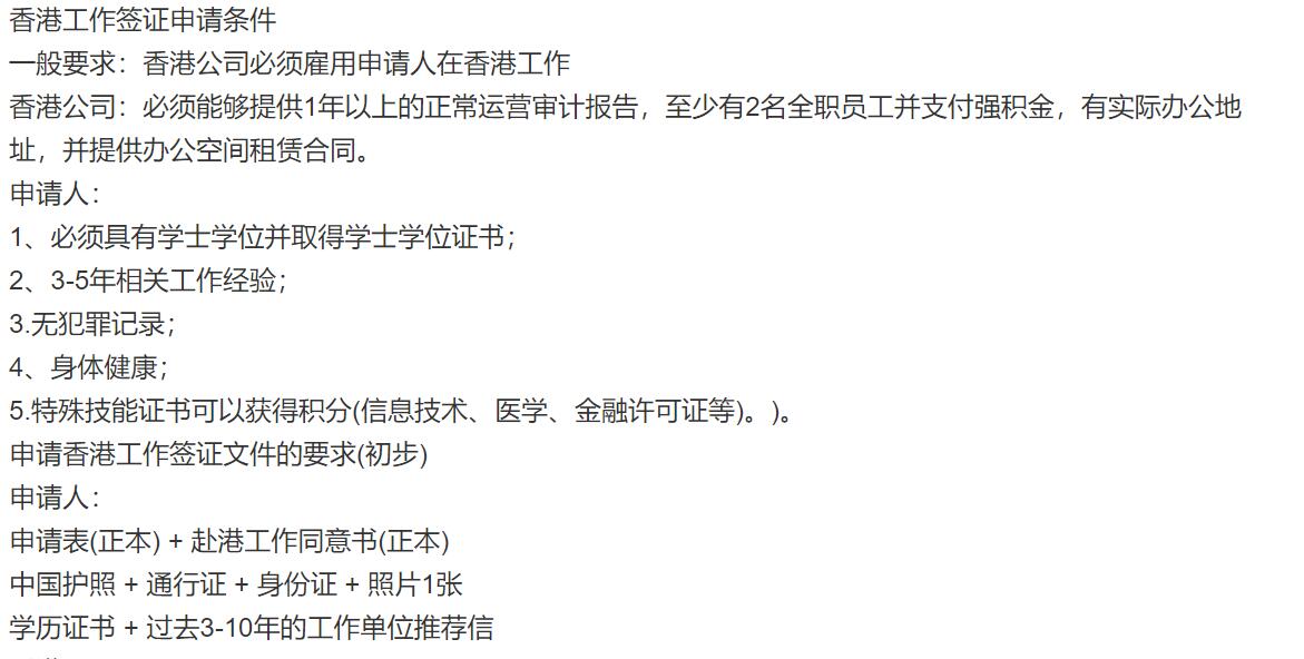 之前在離岸快車有看過,好像是這家香港公司至少要雇幾名香港本地員工,還要經營滿2年還是3年才有工作簽證名額。
