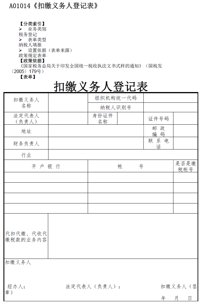 1.初次辦理代扣代繳義務的企業(yè),請?zhí)顚懖⒋蛴、佟犊劾U義務人登記表》;