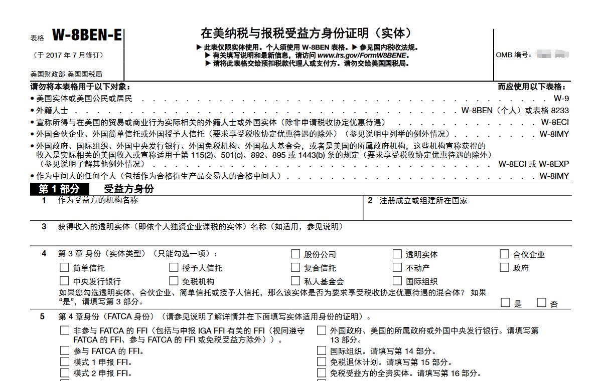 香港公司如何填寫W-8BEN-E文件?