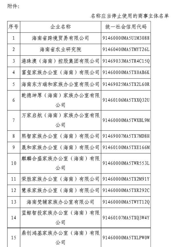 公司名稱中含有家族辦公室的要注意了,海南有301家“家族辦公室”企業名稱被停止使用