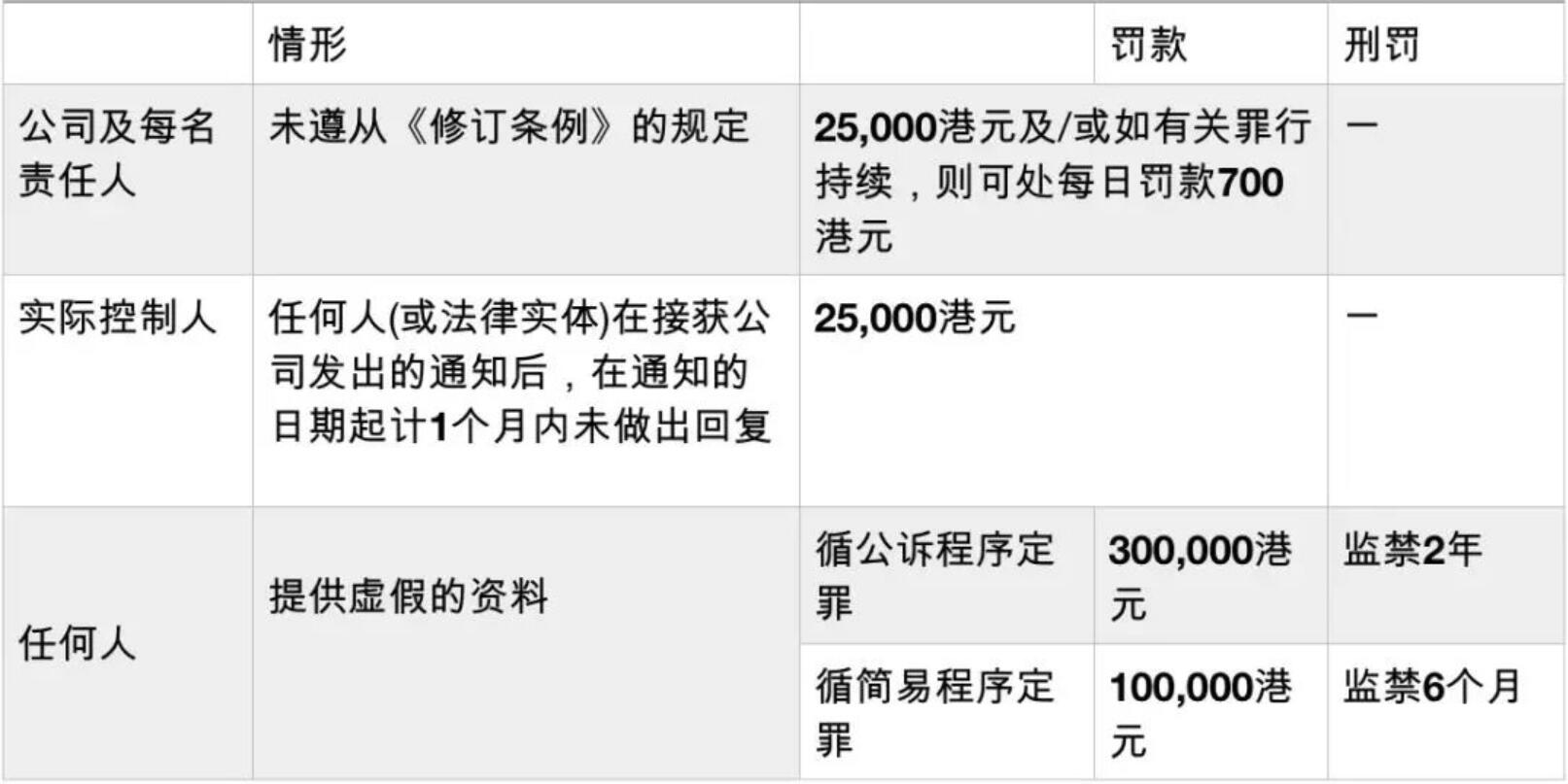 不遵從《2018年公司(修訂)條例》,其相關后果,具體見下表