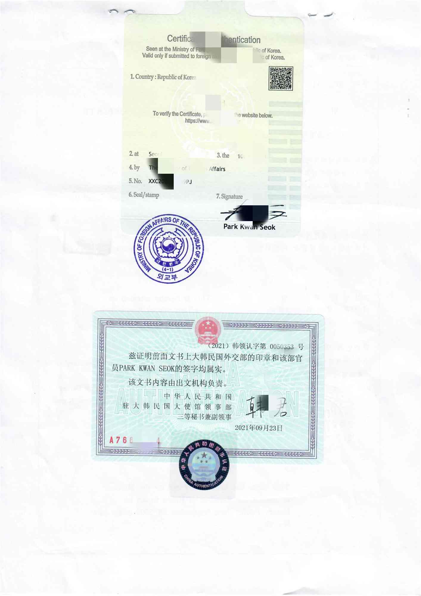 報考中國公務員需提供韓國無犯罪公證認證