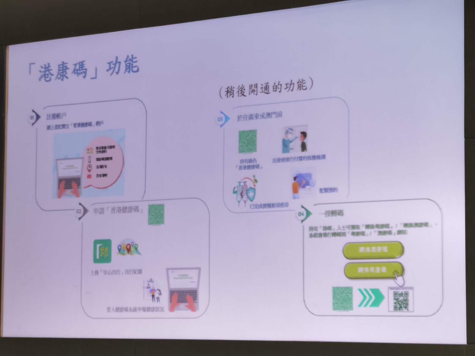 持有港康碼「綠碼」的人士可點擊「轉換粵康碼」/「轉換澳康碼」,系統(tǒng)會進行轉碼到「粵康碼」或「澳康碼」網(wǎng)站,可實現(xiàn)「一按轉碼」。