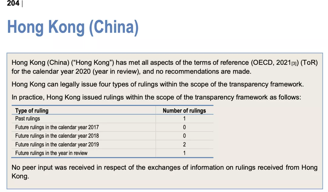 中國(guó)、中國(guó)香港已經(jīng)滿足了OECD的各方面要求,均未收到OECD的任何改進(jìn)建議。目前而言,不管是法律上還是操作上,中國(guó)和中國(guó)香港都具備了實(shí)施相關(guān)稅收信息交換的機(jī)制。