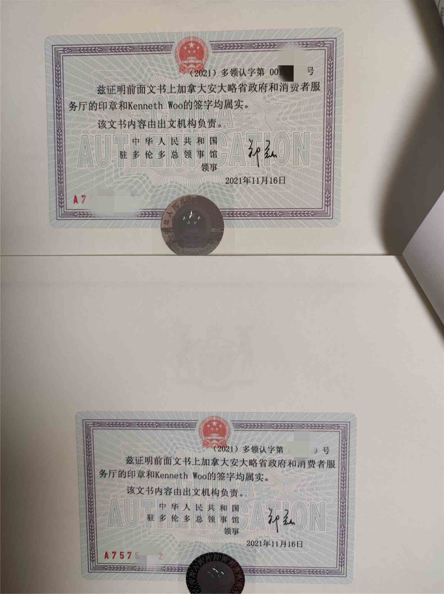 2、其次把公證好之后的文件送往加拿大省政府辦理認證