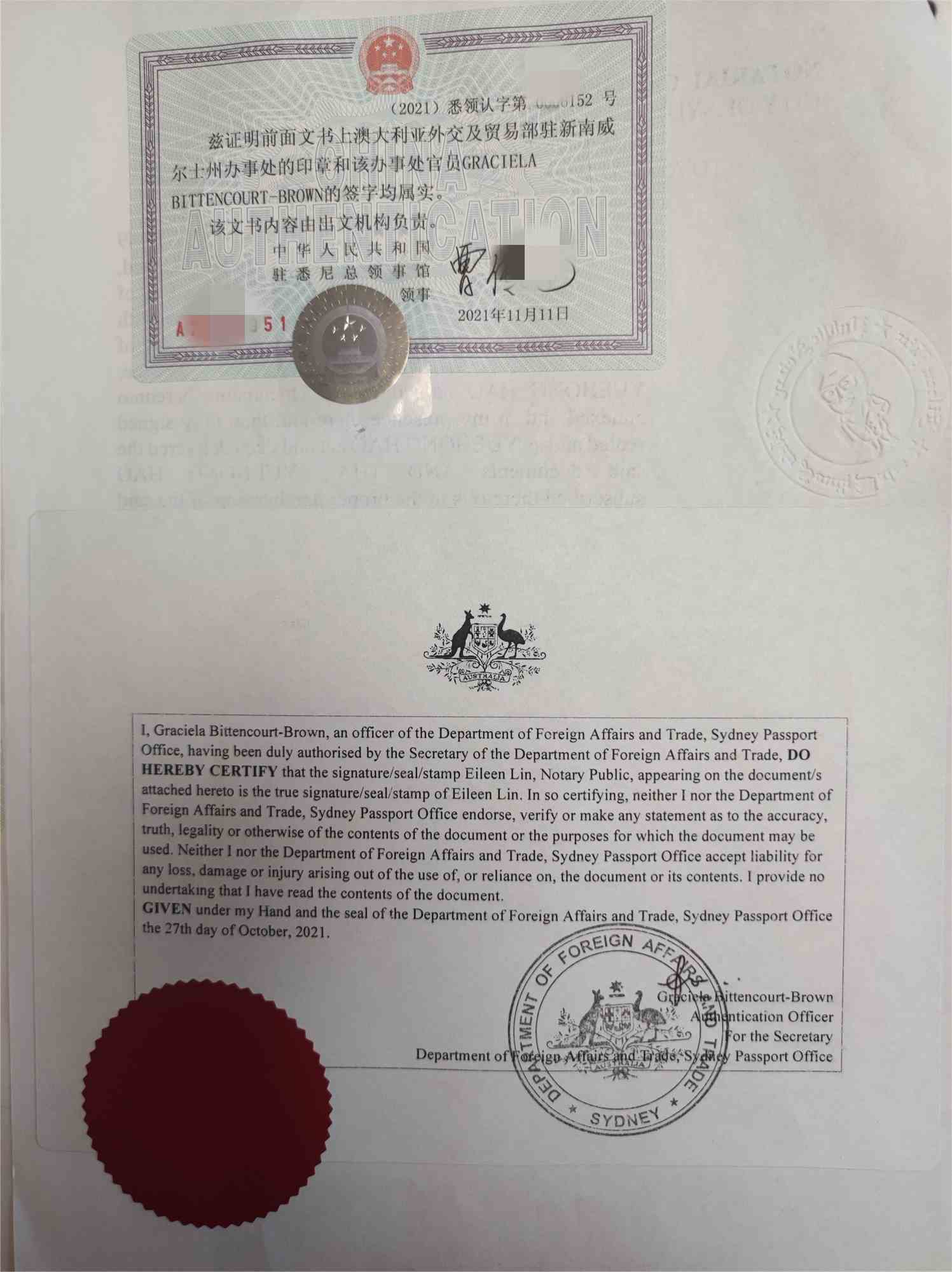 3、最后送往中國駐澳洲使館辦理領(lǐng)事認(rèn)證