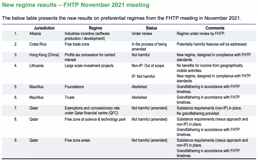 與此同時,「哥斯達黎加」承諾接下來修訂其在自由貿易區(qū)的稅收機制,因此其稅收機制被評定為“處于修訂過程中「in process of being amended」。