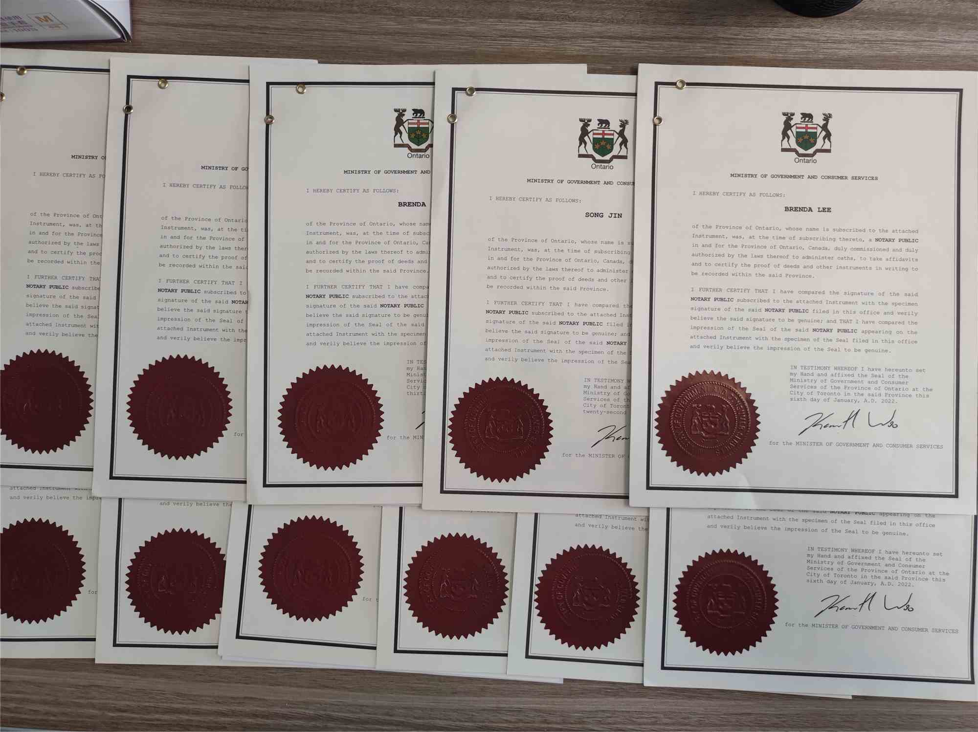 3.最后再將省政府認證的文件遞交至中國駐加使館進行認證;