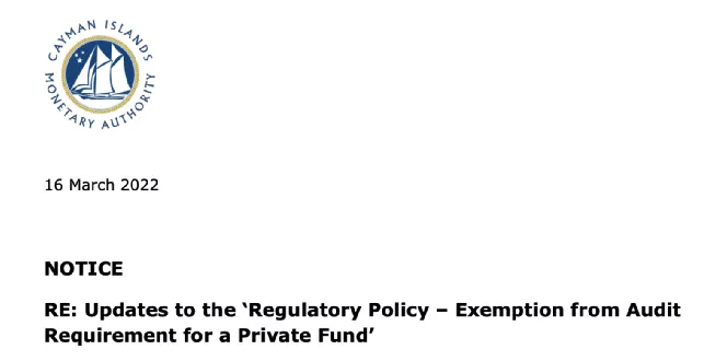 3月16日(本周三),開曼群島金融管理局(Cayman Islands Monetary Authority,下稱“CIMA”)發布最新通知,表示開曼群島已就《私募基金法案》(Private Fund Act)做出修訂,豁免未收到投資者注資的開曼私募基金的年度審計。