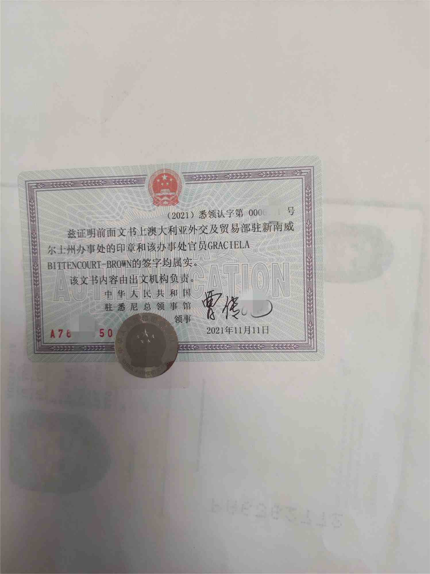 第三步將辦好公證、認證的文件送中國駐澳洲使使館認證。