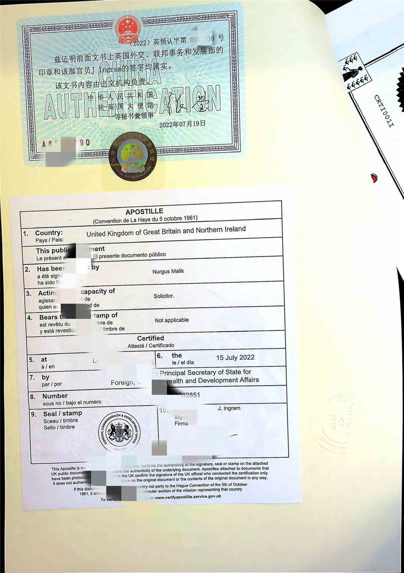 先由英國(guó)公證人也就是國(guó)際公證律師對(duì)bvi公司文件進(jìn)行公證,其次把公證好文件送往英國(guó)外交部辦理認(rèn)證,最后送往中國(guó)駐英國(guó)使領(lǐng)館進(jìn)行認(rèn)證。