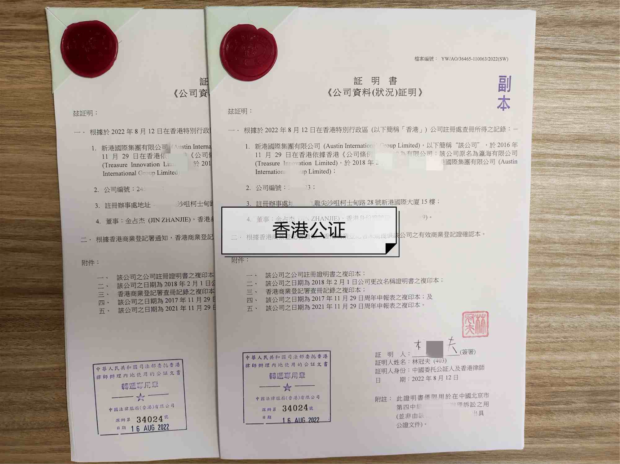 香港公司仲裁申請書及法定代表人證明文件公證認證