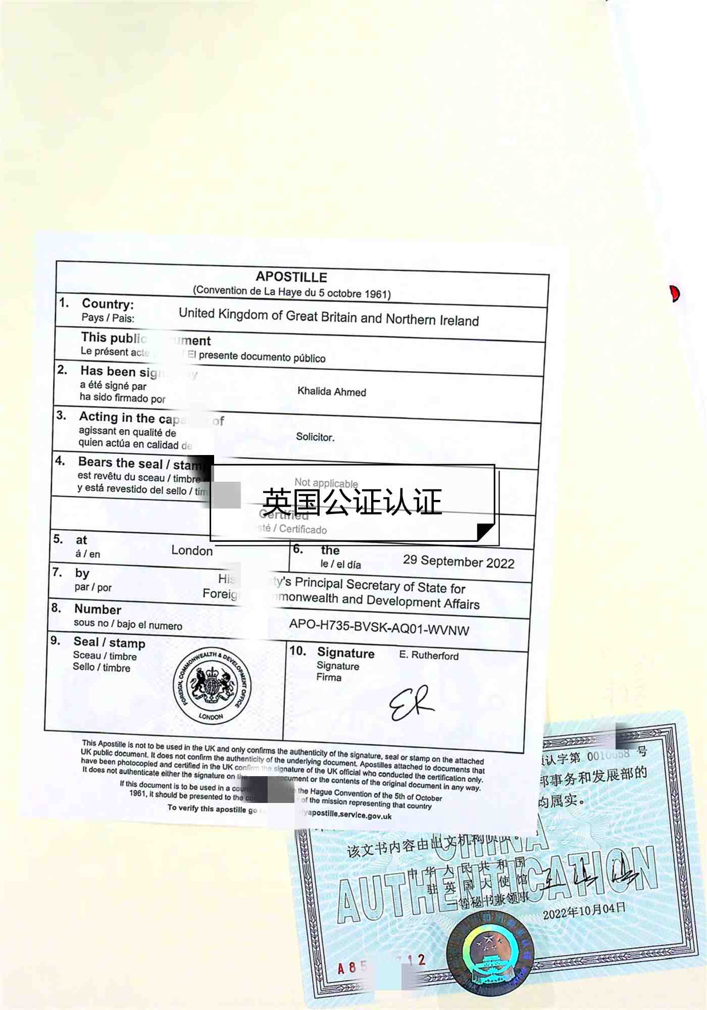 辦理流程:國際公證人公證、英國外交部認證 中國駐英國使館認證